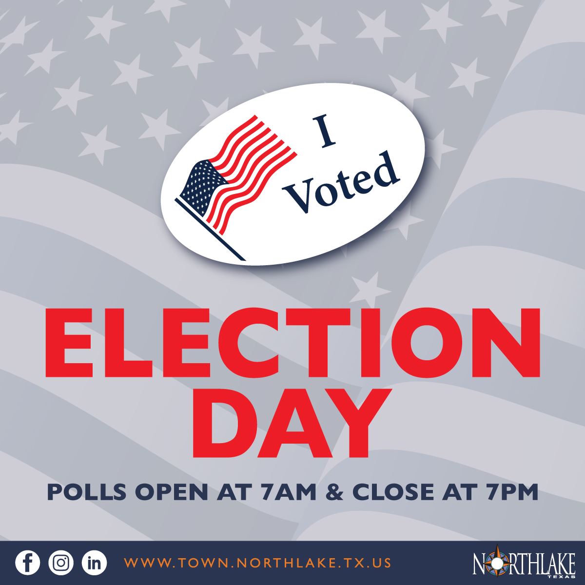 IT'S ELECTION DAY!! Remember: POLLS OPEN AT 7AM and will CLOSE AT 7PM. On Election Day, registered voters may ONLY VOTE at their SPECIFIC PRECINCTS. All results will be updated and posted by the Denton County Elections Administration.